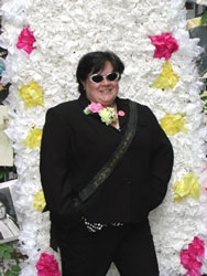 rock star attire---lots of silver, glitter, very high platform shoes.
