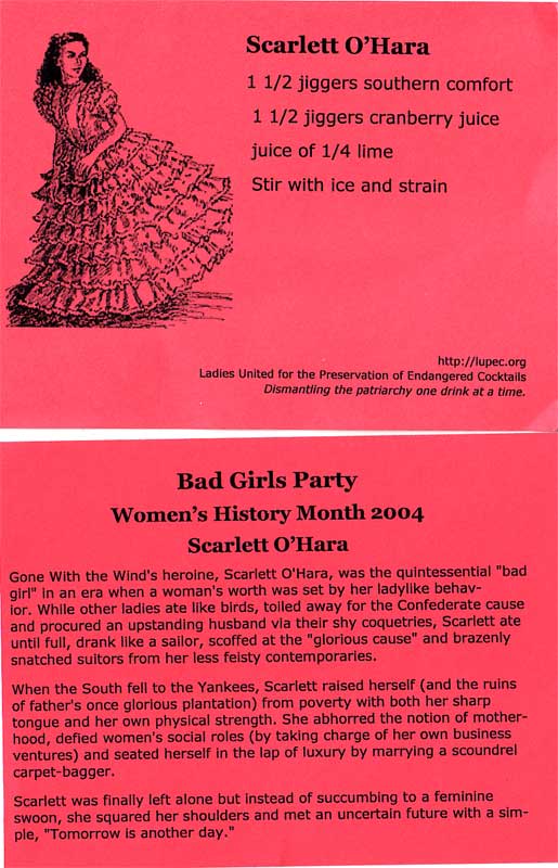 Drink Cards: Brazen Hussy | Chatterley | Scarlett O'Hara