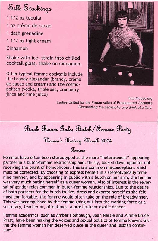 thematic cocktails and optional butch/femme attire. All sorts of guys and gals